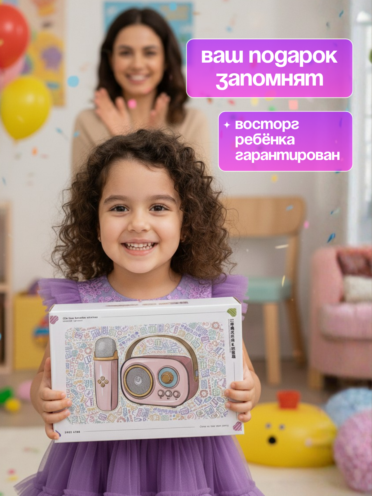В наборе 2 микрофона, работающие одновременно! Можно петь вдвоем в рызные микрофоны! Ищете идеальный способ поднять настроение в компании и создать незабываемую атмосферу на любой вечеринке? Ищете детский микрофон для девочки или мальчика? Хотите занять детей полезной и интересной игрой вместо игр и видео на телефоне? Беспроводной детский микрофон караоке JOJOCAT с портативной колонкой будет выбором в точку! Есть функция изменения голоса - их 6 видов, будет весело! Флешка с песнями уже в комплекте! Подключение по bluetooth к телефону! JOJOCAT - это портативная колонка с беспроводным микрофоном блютуз, которая подойдет и взрослым, и детям, обеспечивая невероятное веселье и незабываемые эмоции! Караоке система JOJOCAT будет отличным подарком на Новый Год, день рождения или 8 марта! А еще детский микрофон JOJOCAT раскрывает таланты!