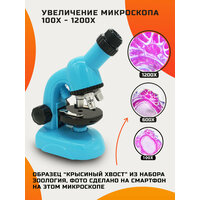 Купить Детский микроскоп Velvi 1200х Голубой, в комплекте с 4D книгой и препаратами Velvi «Mix №12» с доставкой по всей России.