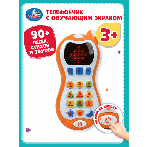 Телефончик с обучающим экраном ТМ «УМка» станет прекрасным подарком для маленьких любознаек: - 90+ песен, стихов и звуков - весёлая азбука про всё на свете - песенки на стихи С. Маршака - 3 режима работы - реалистичные звуки телефона и фотокамеры - изучаем алфавит и цифры - LED экран - регулировка громкости - кнопка «Вкл./Выкл.»