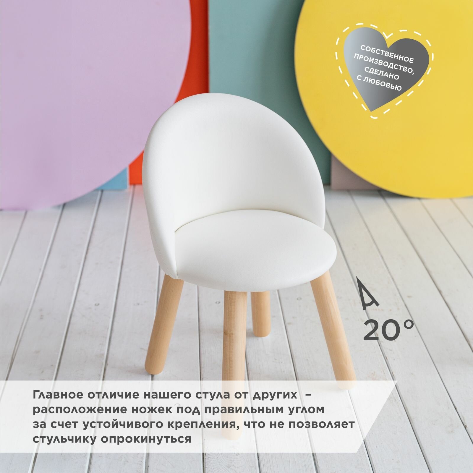 Детский стул мягкий от компании TODI, отлично подойдёт для детей в возрасте от 1,5 до 4 лет. Мягкая обшивка делает стул очень удобным для творческих занятий ребёнка, а современный дизайн стульчика, сделает его украшением любой детской комнаты. Обшивка белого стула выполнена из кож зама. Обшивка голубого, розового, зелёного и жёлтого, бежевого и серого выполнена из велюра. Высота ножек 24,5см, высота с сидением 28см. Общие габариты: 28х33х51 см. Ножки стула находятся под углом, это делает стул очень устойчивым. В комплекте идут войлочные подпятники, для комфортного нахождения стула на любой поверхности. Ножки стула сделаны из массива берёзы, без носочков. Детский мягкий стул – это качественная и комфортная мебель для маленьких детей и малышей. Стул обычно имеет мягкое сиденье и спинку, что позволяет ребенку чувствовать себя комфортно и уютно. Такой стул в нашем магазине выполнен в различных цветах , что позволит вам подобрать его к любому дизайну и интерьеру детской комнаты. Детский мягкий стул подойдет для чтения книг, игр или просто отдыха. Он также может быть использован для создания уютного уголка в комнате. Возможно Вы искали детский мягкий стул, детский стул, детский стульчик.