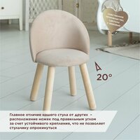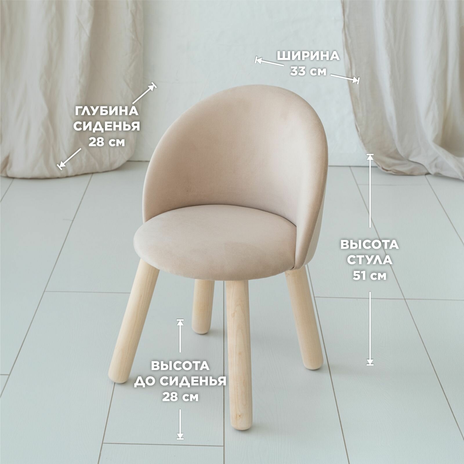 Детский стул мягкий от компании TODI, отлично подойдёт для детей в возрасте от 1,5 до 4 лет. Мягкая обшивка делает стул очень удобным для творческих занятий ребёнка, а современный дизайн стульчика, сделает его украшением любой детской комнаты. Обшивка белого стула выполнена из кож зама. Обшивка голубого, розового, зелёного и жёлтого, бежевого и серого выполнена из велюра. Высота ножек 24,5см, высота с сидением 28см. Общие габариты: 28х33х51 см. Ножки стула находятся под углом, это делает стул очень устойчивым. В комплекте идут войлочные подпятники, для комфортного нахождения стула на любой поверхности. Ножки стула сделаны из массива берёзы, без носочков. Детский мягкий стул – это качественная и комфортная мебель для маленьких детей и малышей. Стул обычно имеет мягкое сиденье и спинку, что позволяет ребенку чувствовать себя комфортно и уютно. Такой стул в нашем магазине выполнен в различных цветах , что позволит вам подобрать его к любому дизайну и интерьеру детской комнаты. Детский мягкий стул подойдет для чтения книг, игр или просто отдыха. Он также может быть использован для создания уютного уголка в комнате. Возможно Вы искали детский мягкий стул, детский стул, детский стульчик.