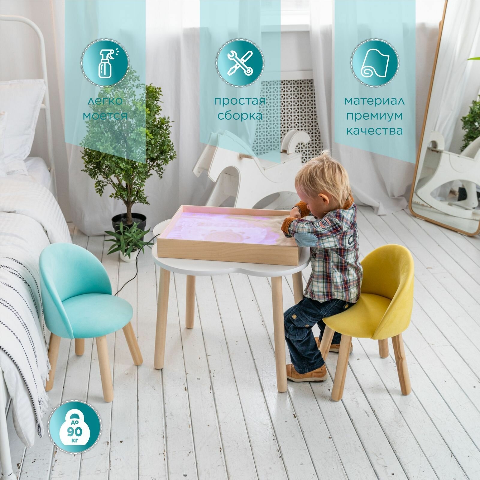 Детский стул мягкий от компании TODI, отлично подойдёт для детей в возрасте от 1,5 до 4 лет. Мягкая обшивка делает стул очень удобным для творческих занятий ребёнка, а современный дизайн стульчика, сделает его украшением любой детской комнаты. Обшивка белого стула выполнена из кож зама. Обшивка голубого, розового, зелёного и жёлтого, бежевого и серого выполнена из велюра. Высота ножек 24,5см, высота с сидением 28см. Общие габариты: 28х33х51 см. Ножки стула находятся под углом, это делает стул очень устойчивым. В комплекте идут войлочные подпятники, для комфортного нахождения стула на любой поверхности. Ножки стула сделаны из массива берёзы, без носочков. Детский мягкий стул – это качественная и комфортная мебель для маленьких детей и малышей. Стул обычно имеет мягкое сиденье и спинку, что позволяет ребенку чувствовать себя комфортно и уютно. Такой стул в нашем магазине выполнен в различных цветах , что позволит вам подобрать его к любому дизайну и интерьеру детской комнаты. Детский мягкий стул подойдет для чтения книг, игр или просто отдыха. Он также может быть использован для создания уютного уголка в комнате. Возможно Вы искали детский мягкий стул, детский стул, детский стульчик.