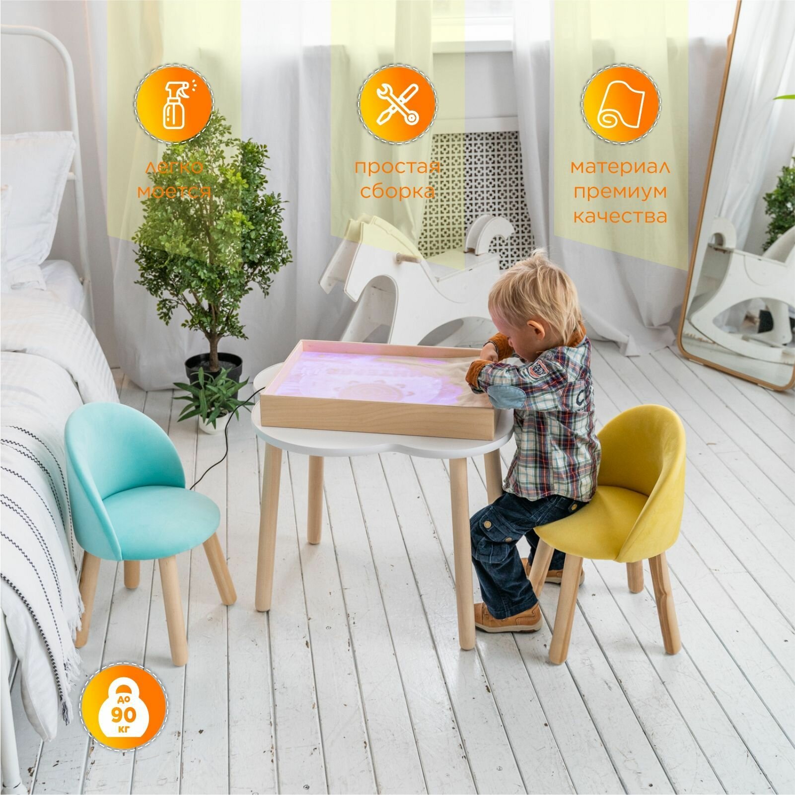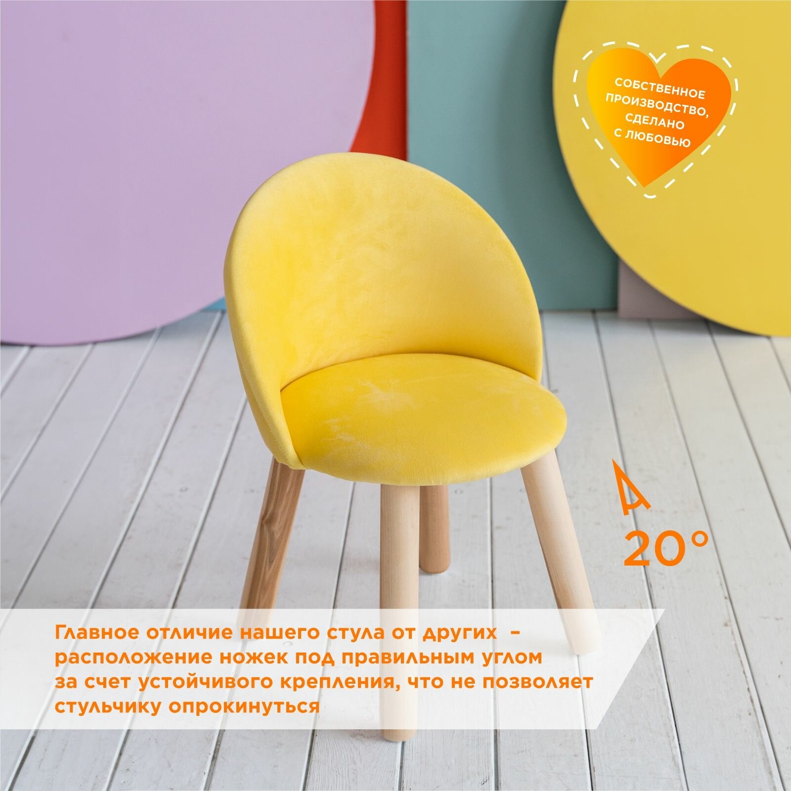 Детский стул мягкий от компании TODI, отлично подойдёт для детей в возрасте от 1,5 до 4 лет. Мягкая обшивка делает стул очень удобным для творческих занятий ребёнка, а современный дизайн стульчика, сделает его украшением любой детской комнаты. Обшивка белого стула выполнена из кож зама. Обшивка голубого, розового, зелёного и жёлтого, бежевого и серого выполнена из велюра. Высота ножек 24,5см, высота с сидением 28см. Общие габариты: 28х33х51 см. Ножки стула находятся под углом, это делает стул очень устойчивым. В комплекте идут войлочные подпятники, для комфортного нахождения стула на любой поверхности. Ножки стула сделаны из массива берёзы, без носочков. Детский мягкий стул – это качественная и комфортная мебель для маленьких детей и малышей. Стул обычно имеет мягкое сиденье и спинку, что позволяет ребенку чувствовать себя комфортно и уютно. Такой стул в нашем магазине выполнен в различных цветах , что позволит вам подобрать его к любому дизайну и интерьеру детской комнаты. Детский мягкий стул подойдет для чтения книг, игр или просто отдыха. Он также может быть использован для создания уютного уголка в комнате. Возможно Вы искали детский мягкий стул, детский стул, детский стульчик.