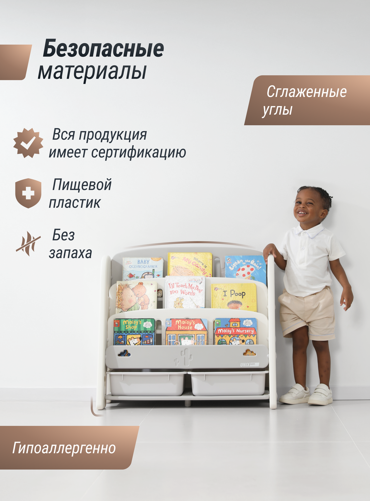 Детский напольный стеллаж для книг и игрушек UNIX Kids Сactus Grey подставка для учебников и журналов: сравнение цен, характеристики, фото, актуальное наличие и цены.