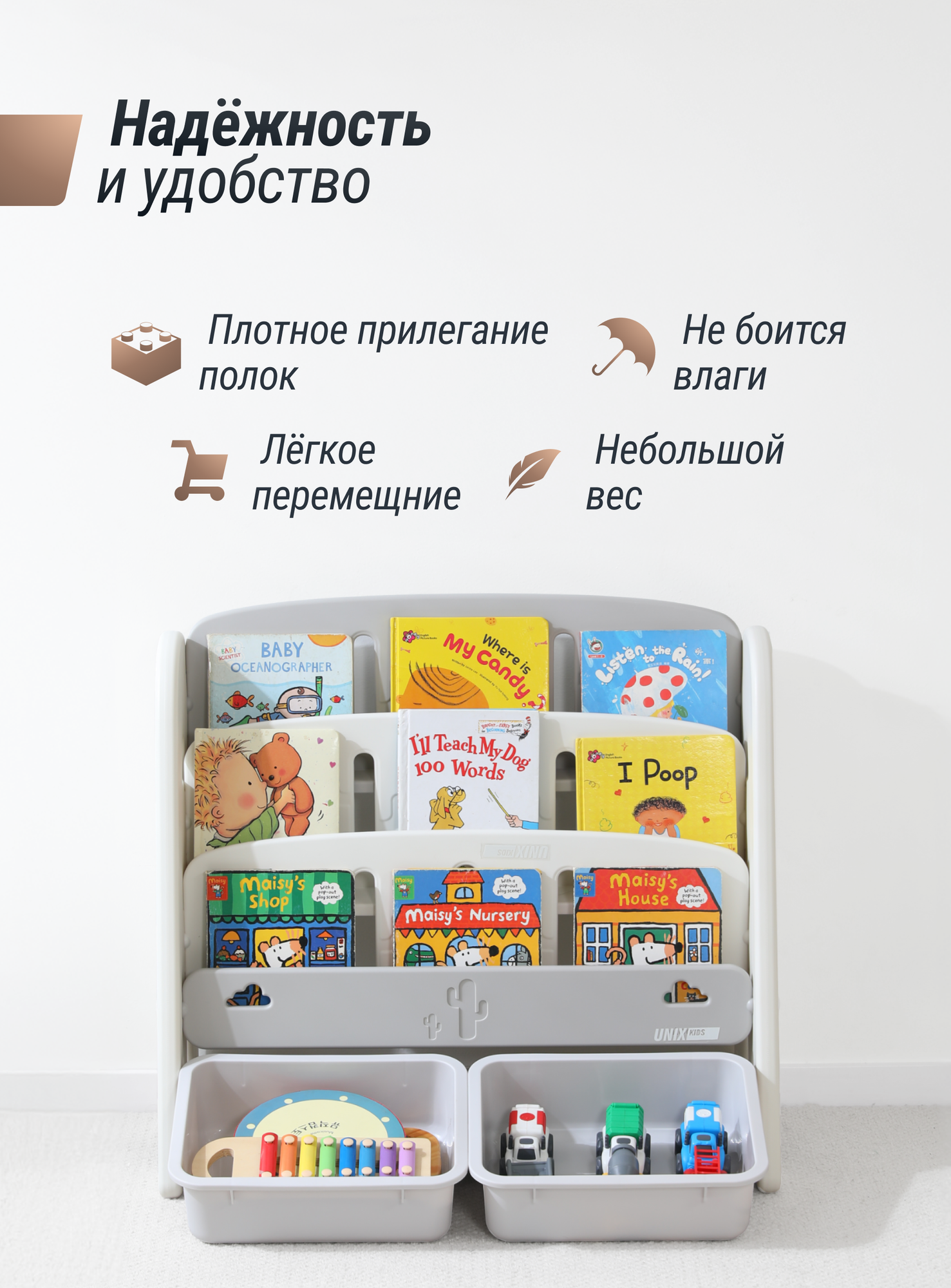 Купить Детский напольный стеллаж для книг и игрушек UNIX Kids Сactus Grey подставка для учебников и журналов с доставкой по всей России.