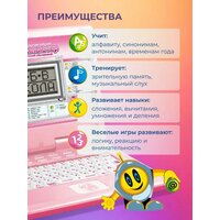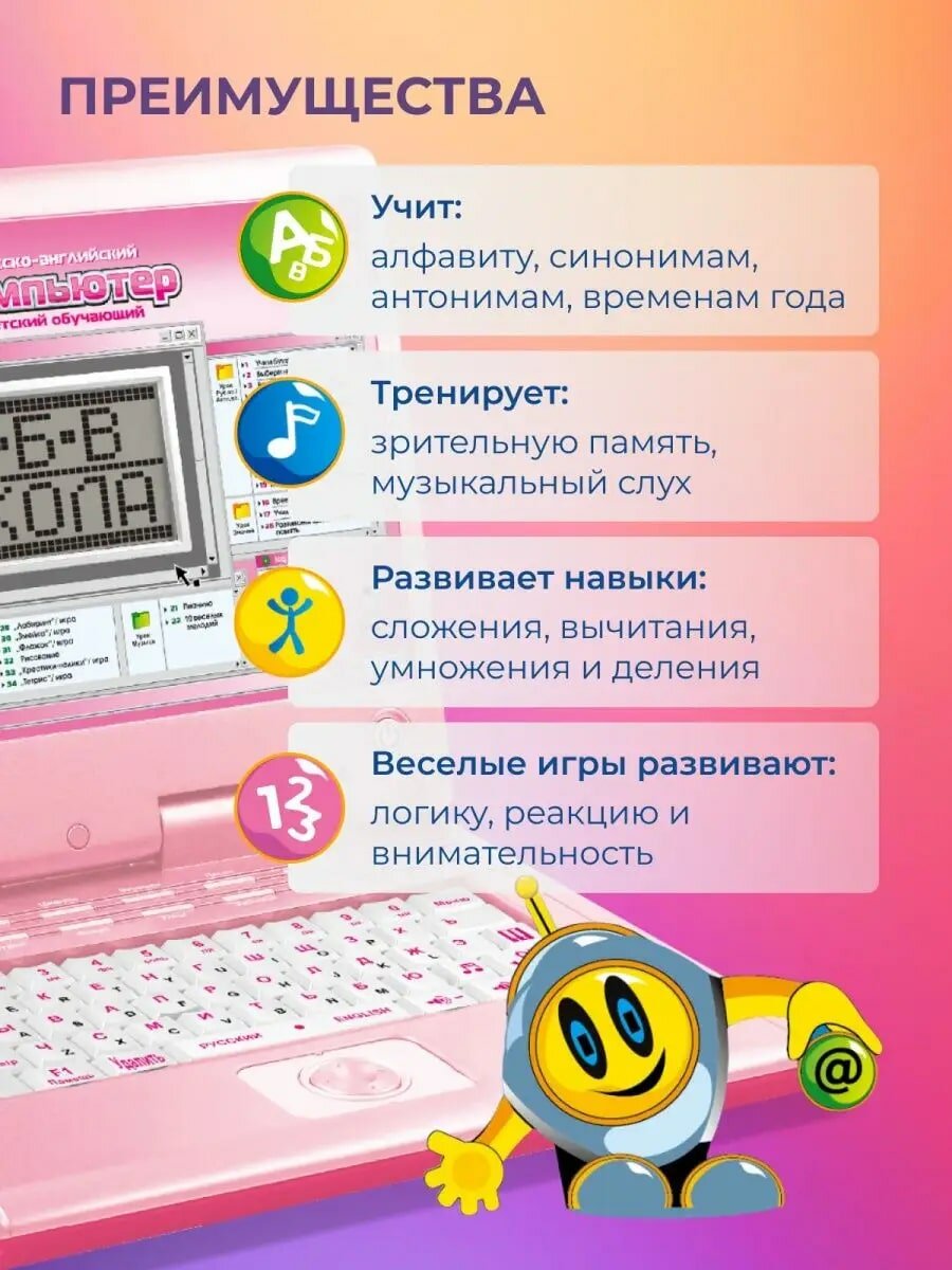 - Развивающий ноутбук невероятно функционален, потому что с ним можно научиться определять время или выучить дни недели и времена года. Компьютер развивающий может быть использован не только для обучения, но и для веселого и полезного отдыха. Дружелюбный голос диктора поможет развить слух и правильное произношение. Ноутбук развивающий поможет родителям по подготовке детишек к школе.
