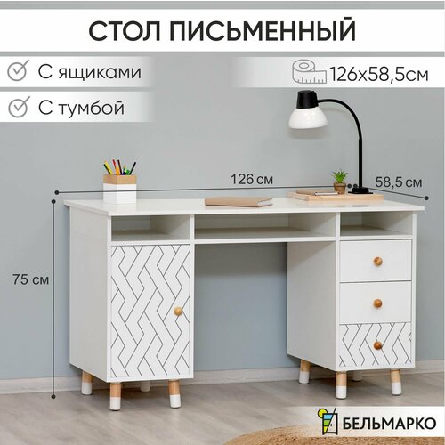 Детский письменный стол «Stumpa» изготовлен из ЛДСП белого цвета. Задняя стенка лхдф.