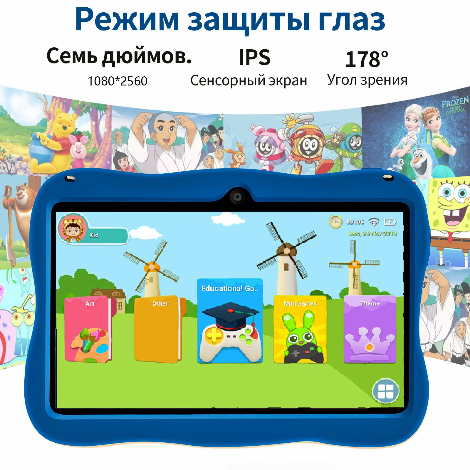 Детский планшет для игр и обучения андроид, противоударный, развивающий, 8/512 ГБ, синий: сравнение цен, характеристики, фото, актуальное наличие и цены.