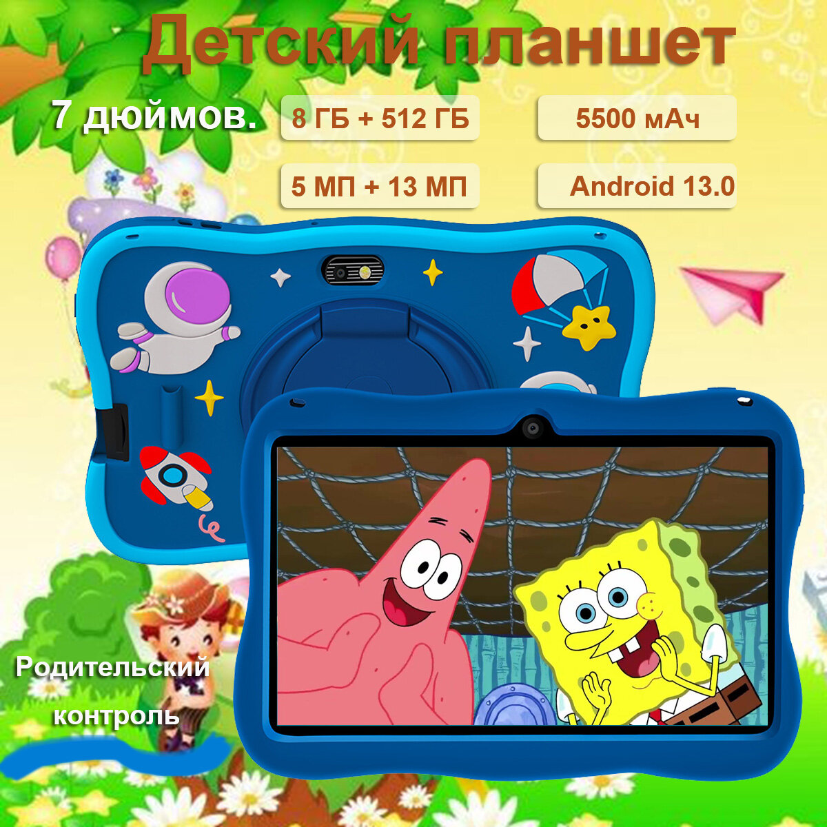 Детский планшет для мультиков и игр PAD7 Kids /8Gb/512Gb 7″ IPS 2560*1080/Андроид 13/Синий/13MP: сравнение цен, характеристики, фото, актуальное наличие и цены.