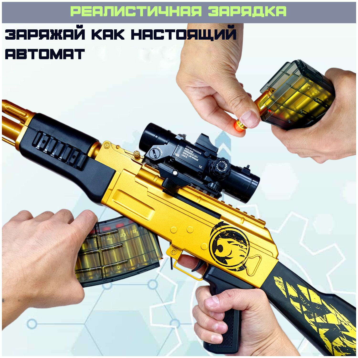 Детский пневматический автомат-бластер с глушителем, оптическим прицелом и выбросом гильз (92 см): сравнение цен, характеристики, фото, актуальное наличие и цены.