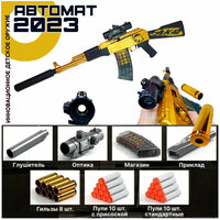 Купить Детский пневматический автомат-бластер с глушителем, оптическим прицелом и выбросом гильз (92 см) с доставкой по всей России.