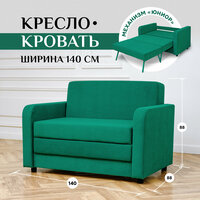 Купить Детский раскладной диван-кровать мини 561, диван прямой на балкон, износостойкий велюр, цвет изумрудный, шириной 140 см с доставкой по всей России.