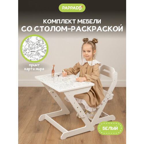 Детский растущий комплект стол-раскраска и стул от «Pappado», на рост от 105 до 155 см, принт карта мира
