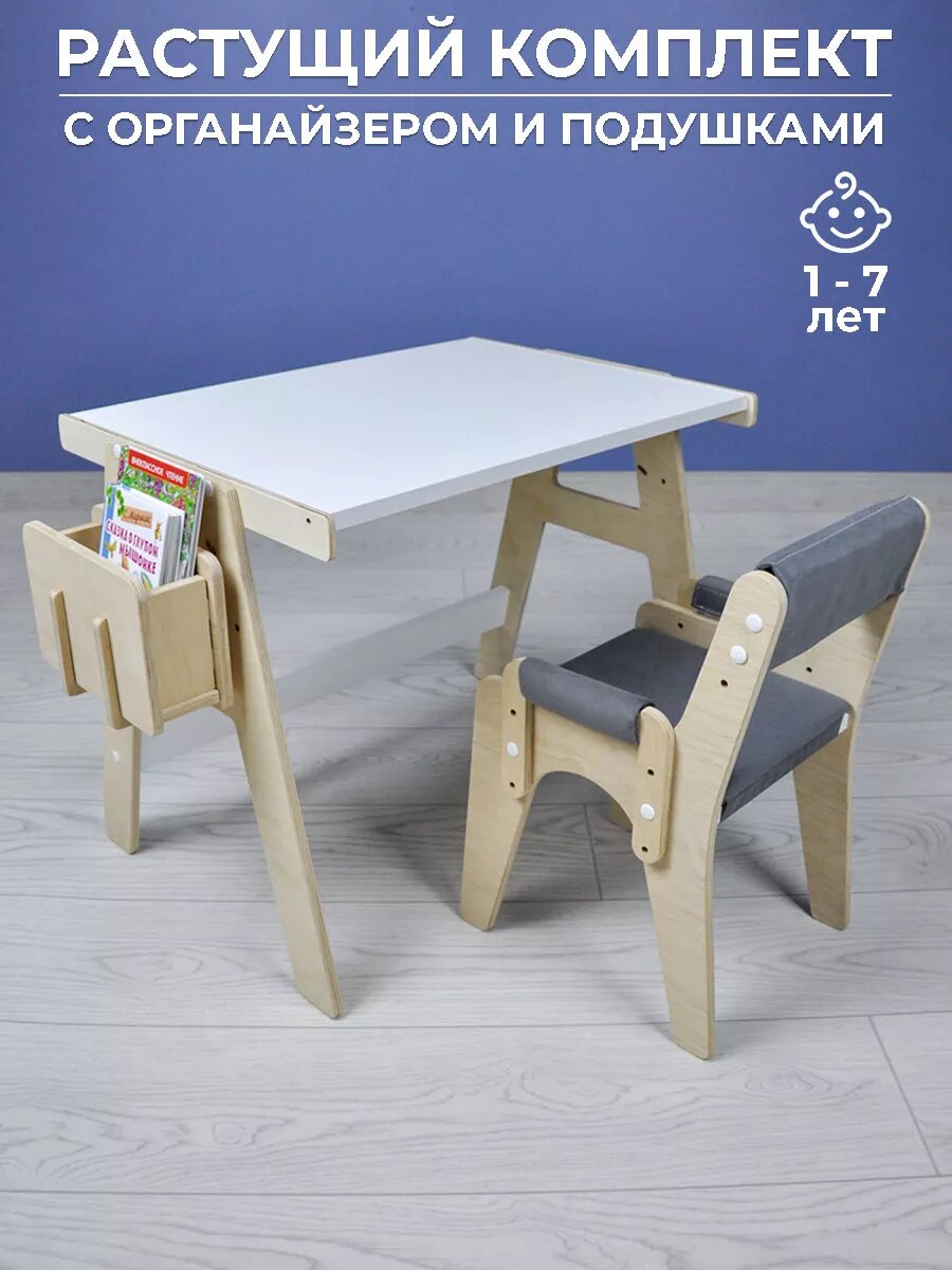 Наш детский растущий стол-мольберт и стул – это больше, чем просто мебель. Это инвестиция в здоровье, комфорт и творческое развитие вашего ребенка. Эргономичный дизайн способствует формированию правильной осанки, а многофункциональность комплекта "растишка" открывает широкие возможности для учебы и творчества. Естественные, спокойные цвета гармонично вписываются в любой интерьер, создавая уютную атмосферу в комнате. Компактные размеры набора мебели для детей позволяют легко разместить его даже в небольших пространствах, обеспечивая вашему ребенку удобное и функциональное место для занятий.