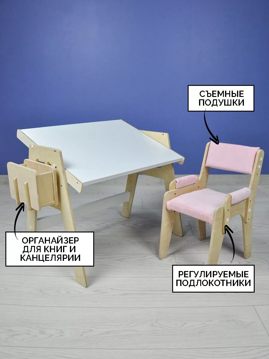 Наш детский растущий стол-мольберт и стул – это больше, чем просто мебель. Это инвестиция в здоровье, комфорт и творческое развитие вашего ребенка. Эргономичный дизайн способствует формированию правильной осанки, а многофункциональность комплекта "растишка" открывает широкие возможности для учебы и творчества. Естественные, спокойные цвета гармонично вписываются в любой интерьер, создавая уютную атмосферу в комнате. Компактные размеры набора мебели для детей позволяют легко разместить его даже в небольших пространствах, обеспечивая вашему ребенку удобное и функциональное место для занятий.