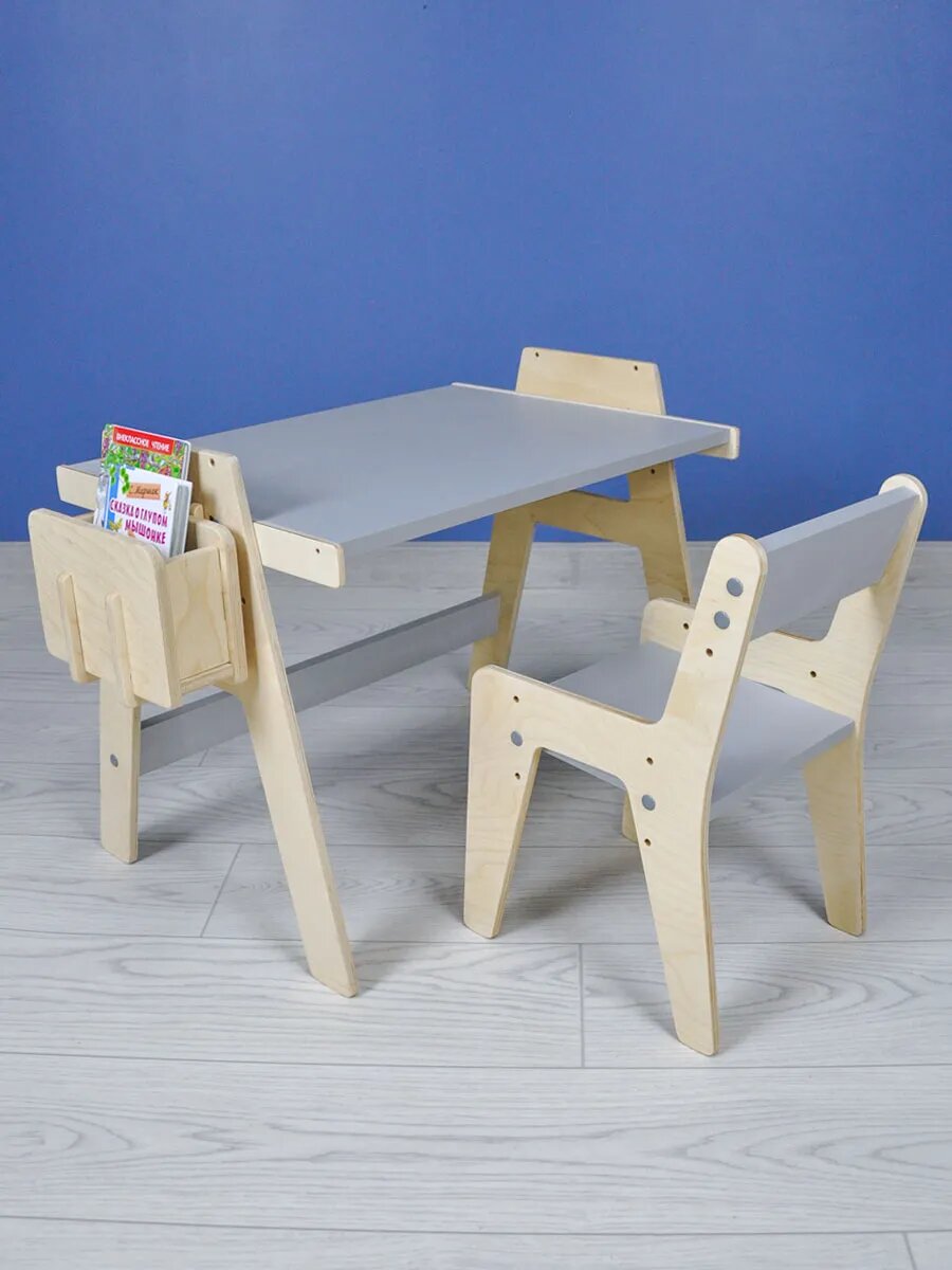 Мы используем только высококачественные материалы – серый ЛДСП для столешницы, спинки и сиденья, а также высококачественную березовую фанеру для ножек, боковых деталей стола и стула, а также навесного ящика. Эти материалы не только гарантируют долговечность и безопасность, но и позволяют вам самостоятельно выбирать финишное покрытие для деталей из фанеры. Все необходимые крепежи включены в комплект, что обеспечивает быструю и легкую сборку. Гладкие поверхности и отсутствие острых углов обеспечивают дополнительную безопасность для вашего ребенка.