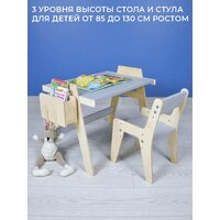 Наш детский растущий стол-мольберт и стул – это больше, чем просто мебель. Это инвестиция в здоровье, комфорт и творческое развитие вашего ребенка. Эргономичный дизайн способствует формированию правильной осанки, а многофункциональность комплекта "растишка" открывает широкие возможности для учебы и творчества. Естественные, спокойные цвета гармонично вписываются в любой интерьер, создавая уютную атмосферу в комнате. Компактные размеры набора мебели для детей позволяют легко разместить его даже в небольших пространствах, обеспечивая вашему ребенку удобное и функциональное место для занятий.