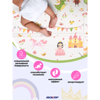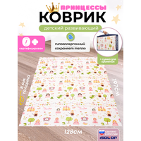 Коврик Принцессы выполнен в пастельных тонах, что делает его привлекательным для малышей. Милые рисунки на одной стороне коврика и однотонная поверхность на другой стороне обеспечивают разнообразие в играх и обучении.