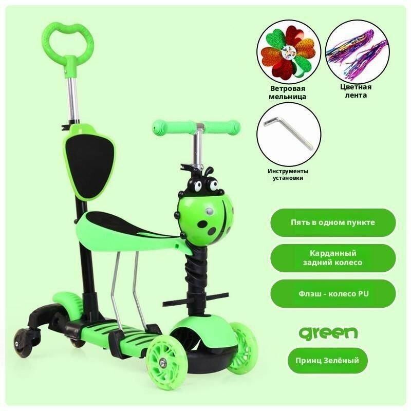 Детский самокат «Пять в одном», максимальная нагрузка 25кг, светящиеся колеса, зеленый: сравнение цен, характеристики, фото, актуальное наличие и цены.
