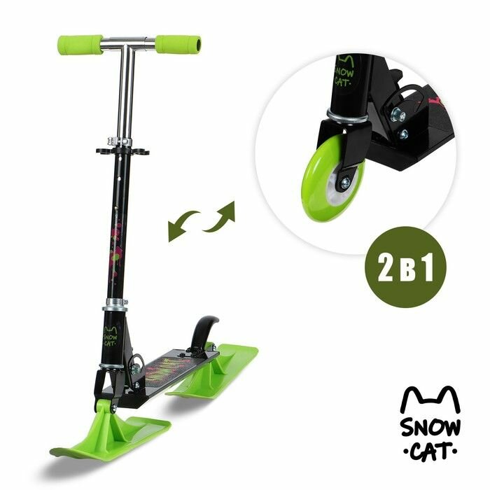 Купить Детский самокат-снегокат 2 в 1 для катания зимой и летом, руль регулируется по высоте, ножной тормоз, складной механизм, пластиковые колеса 100 мм + съемные лыжи с доставкой по всей России.
