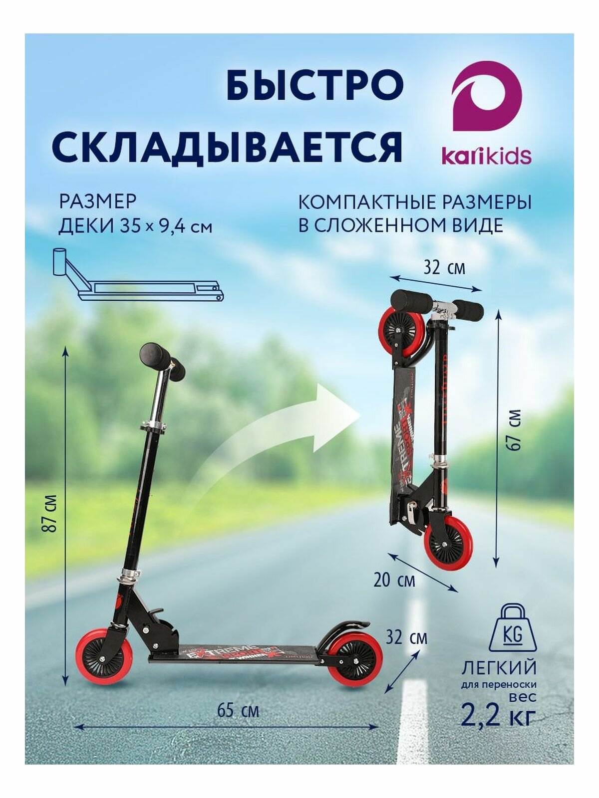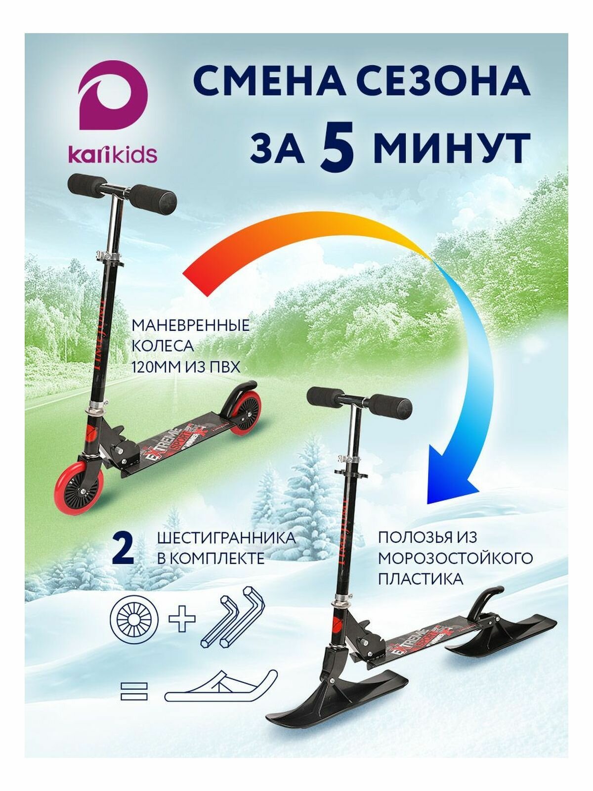 Детский самокат-снегокат kari 2 в 1, 2-х колесный MU2140720B, цвет красный, чёрный: сравнение цен, характеристики, фото, актуальное наличие и цены.