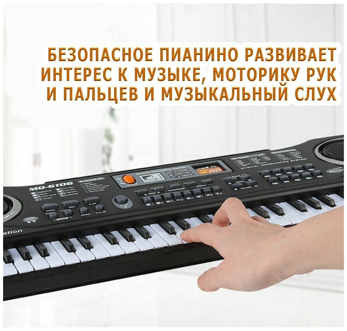 Купить Детский синтезатор-пианино 61 клавиша с микрофоном работает от сети и батареек с доставкой по всей России.
