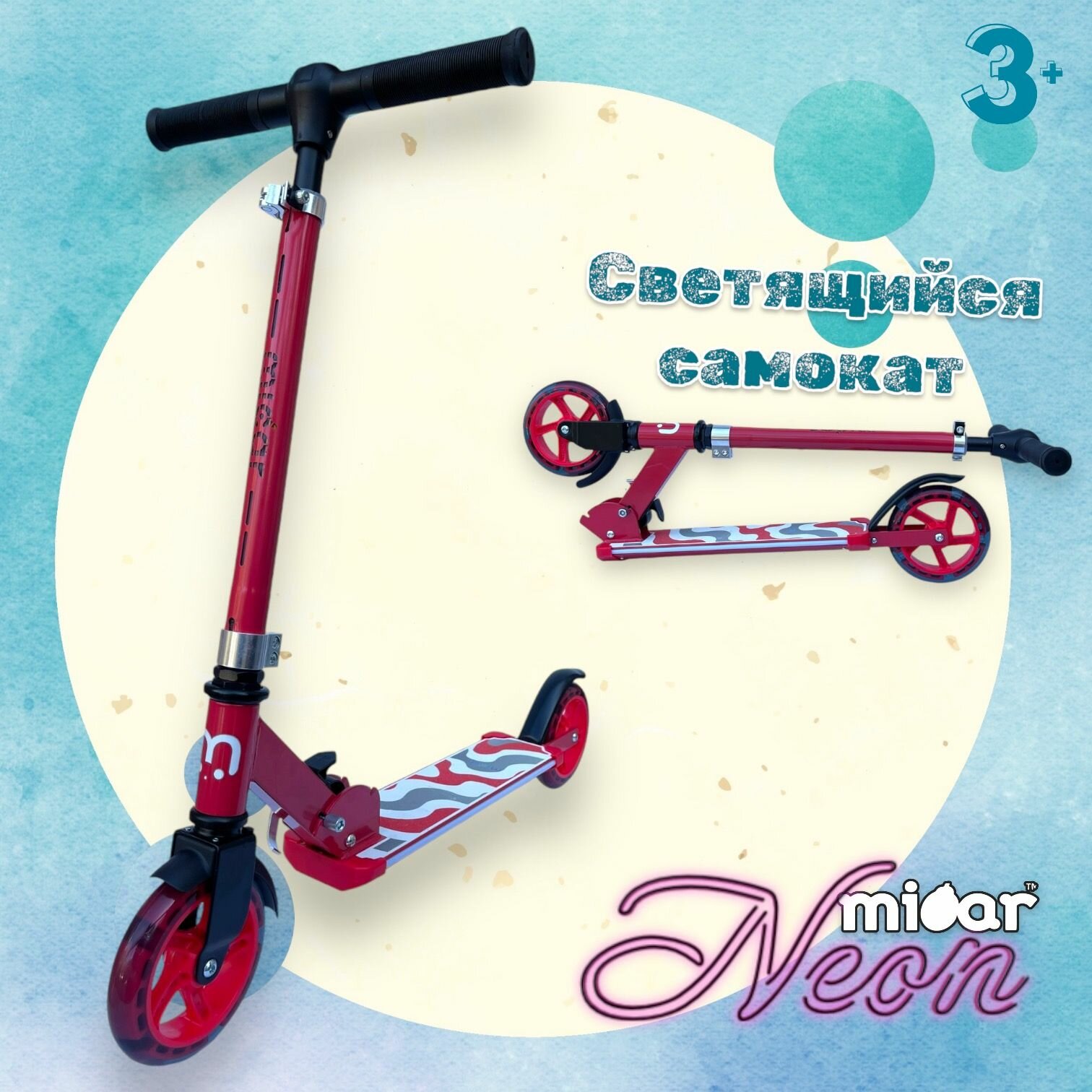 Купить Детский складной двухколёсный самокат со светящимися колёсами и платформой Micar Neon 145 Красный с доставкой по всей России.
