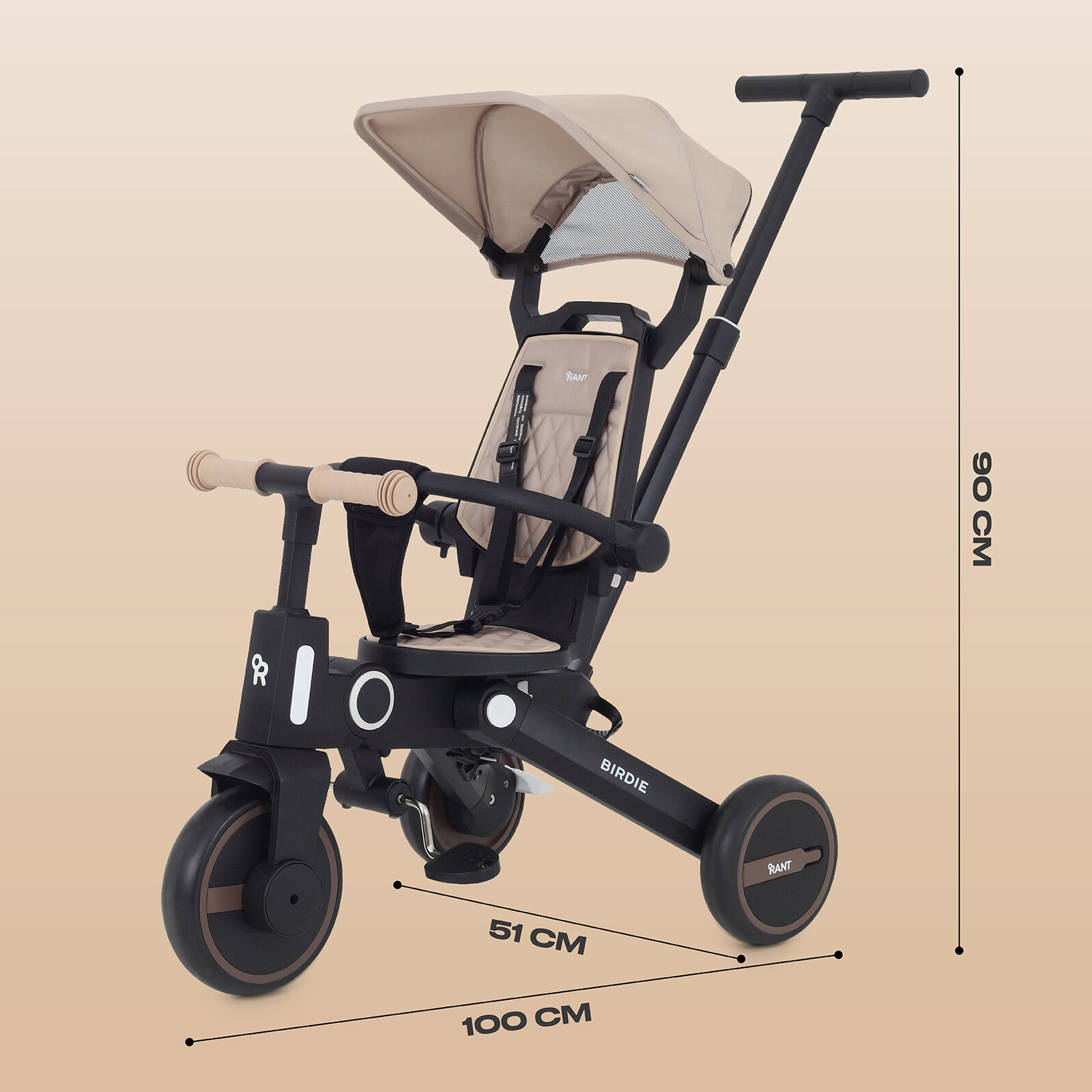 Детский складной трехколесный велосипед с родительской ручкой Rant Birdie Beige: сравнение цен, характеристики, фото, актуальное наличие и цены.