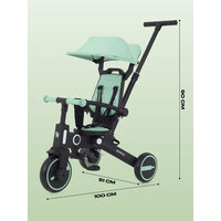 - идеальный выбор для малыша от 10 месяцев до 5 лет. • Этот велосипед-коляска имеет 7 вариантов конфигурации, что дает возможность настроить его под любой возраст и предпочтения вашего ребенка. • Резиновые колеса диаметром 21 и 18 сантиметров обеспечивают комфортное и безопасное катание для детей. • Удобный руль с мягкими ручками из резины и поворотное сиденье на 360° делают процесс управления легким и приятным. Размер сиденья: 19*23 см. • Съемный/подъемный бампер с разделителем между ножками (также съемный) гарантирует безопасность и удобство во время поездок. • Защитный капор от солнца можно убрать, что позволяет адаптировать велосипед к погодным условиям. • Тормоз на заднем колесе, съемный трехточечный ремень безопасности и установка педалей как подставку под ножки обеспечивают дополнительную безопасность и удобство. • Функция блокировки руля и свободного хода переднего колеса делают управление более контролируемым. • Телескопическая родительская ручка велоколяски, регулируемая по высоте (67, 90, 94 см от пола), позволяет вам легко подстроить велосипед под ваш рост. Когда малыш подрастет, вы можете убрать ручку. • Компактная система складывания делает его легким в хранении и транспортировке. Габариты в сложенном виде: 60*33*34 см. • Максимальная нагрузка до 20 кг и вес велосипеда всего 7 кг делают его идеальным выбором для активного отдыха малыша. Наш велик трехколесный - отличный подарок как для девочки, так и для мальчика!