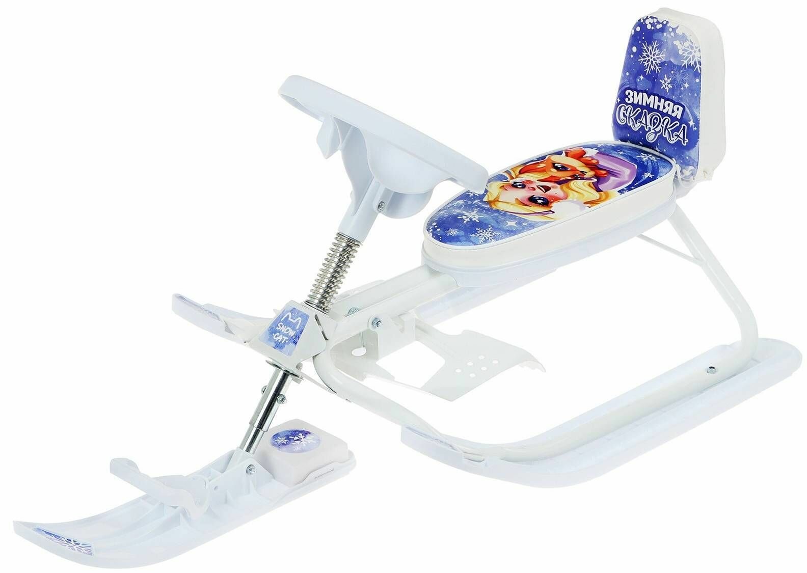 Купить Детский снегокат растущий, зимние снежные санки для катания по снегу с мягким сиденьем и съемной спинкой, авторуль и буксировочный трос с доставкой по всей России.