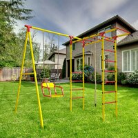 Прекрасный уличный спортивный комплекс для частной территории, дачи или дворовой площадки. Этого прекрасно хватает для полноценного комплексного развития ребенка. (возможны другие комплектации) Данная модель очень популярна в летний сезон! В комплекте вы найдете качели и турник. Такой комплекс помогает развивать у ребенка: Реакцию Скорость мышления Вестибулярный аппарат Выносливость Дыхательную и нервную систему В комплексе присутствуют элементы для разных упражнений - это позволяет просто и эффективно разнообразить тренировки и игры на свежем воздухе. О пользе нагрузок, получаемых при занятиях на спортивном комплексе, говорят, как в школе, так и в детском саду. Физическая активность необходима, если вы хотите видеть своего ребенка здоровым и крепким!