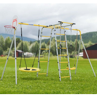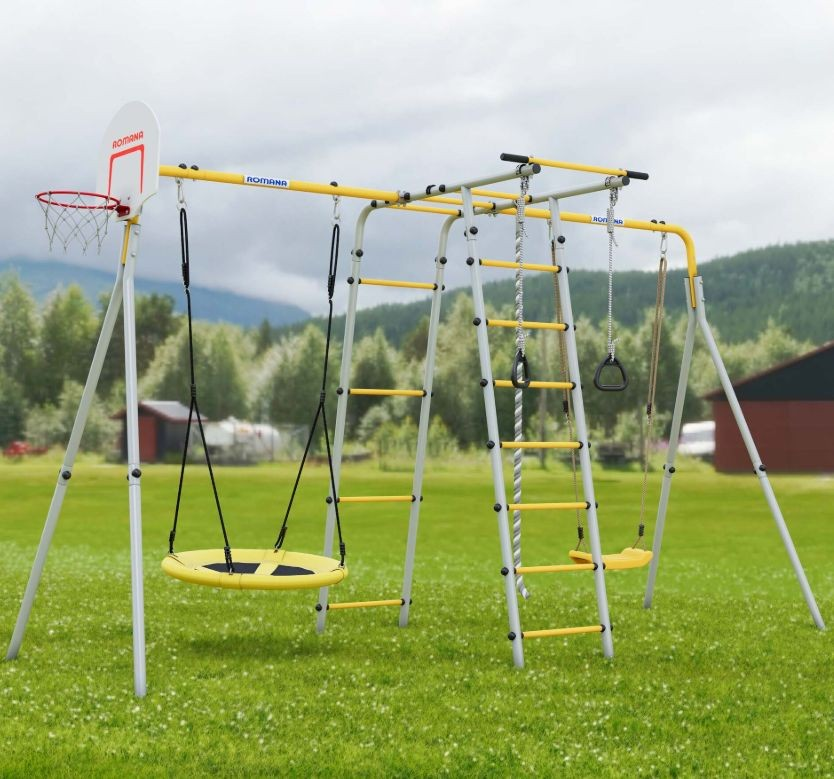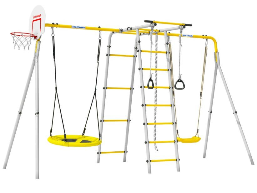 Комплекс Romana Лесная поляна-3-PRO выполнен в ярком и привлекательном для детей дизайне. Сочетание серого и желтого цветов создает атмосферу уюта и радости, что способствует развитию позитивного отношения к спорту и активному образу жизни.