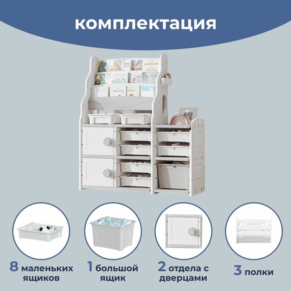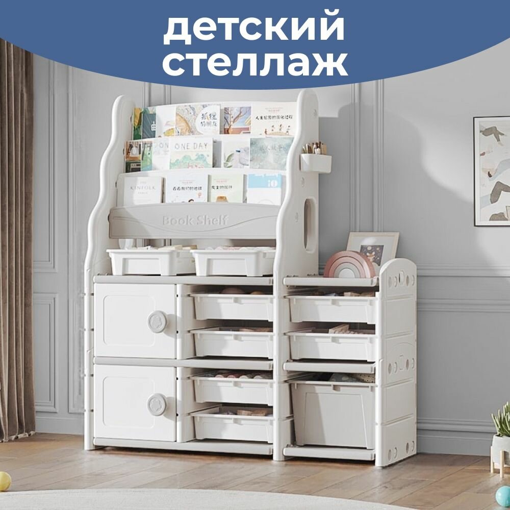 Детский стеллаж «Друзья» для игрушек и книг 104х35х120см, книжная полка напольная, белый; серый: сравнение цен, характеристики, фото, актуальное наличие и цены.
