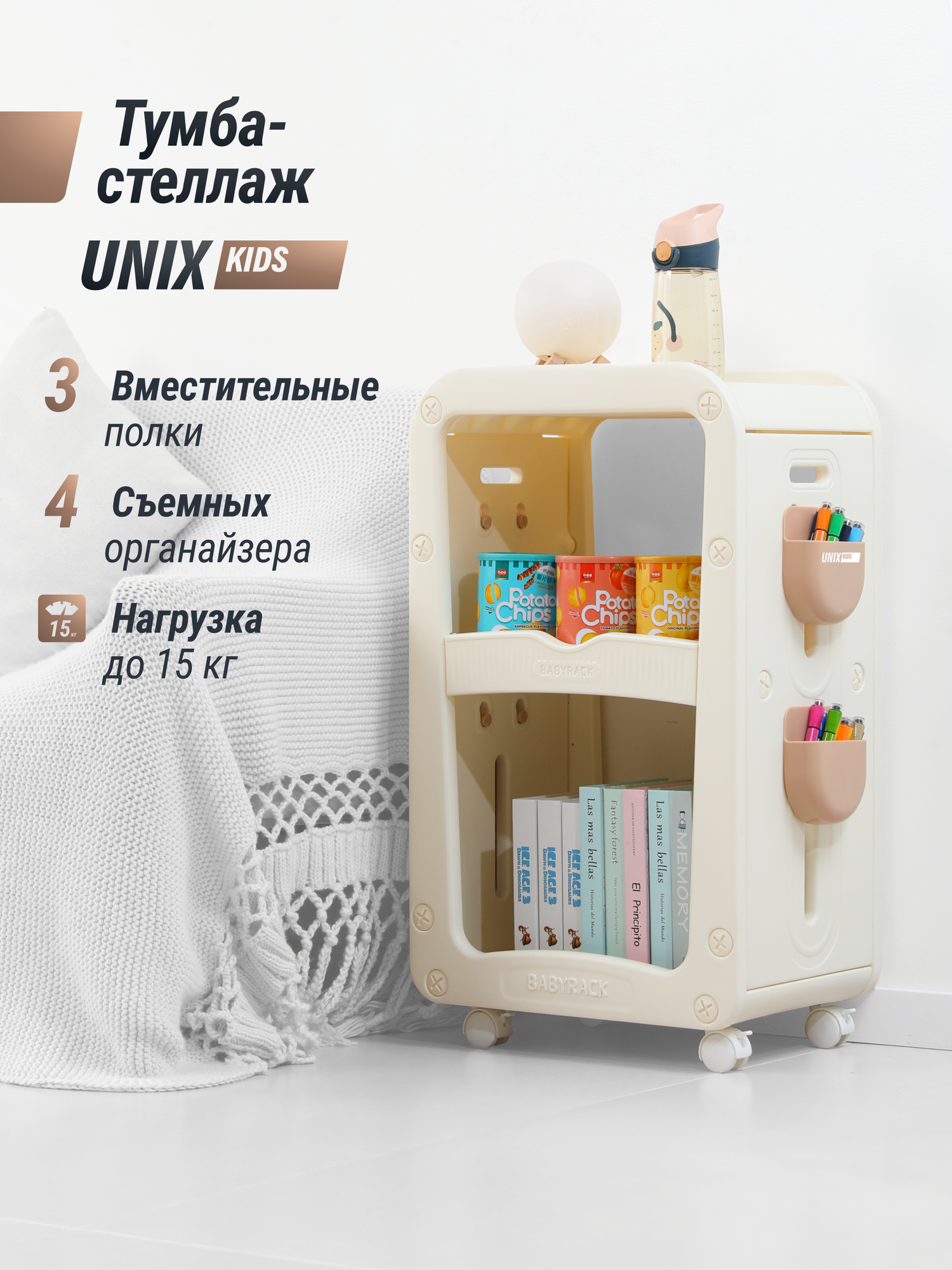 Детский стеллаж для книг UNIX Kids Babyrack 3 полки, тумба для игрушек в детскую на колесиках, 73 см: сравнение цен, характеристики, фото, актуальное наличие и цены.