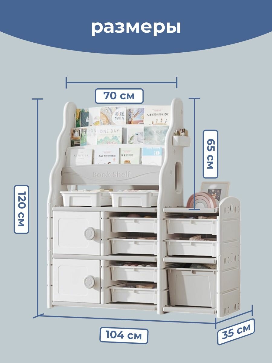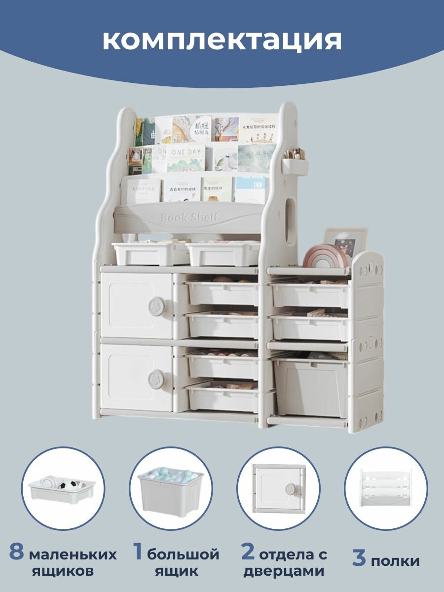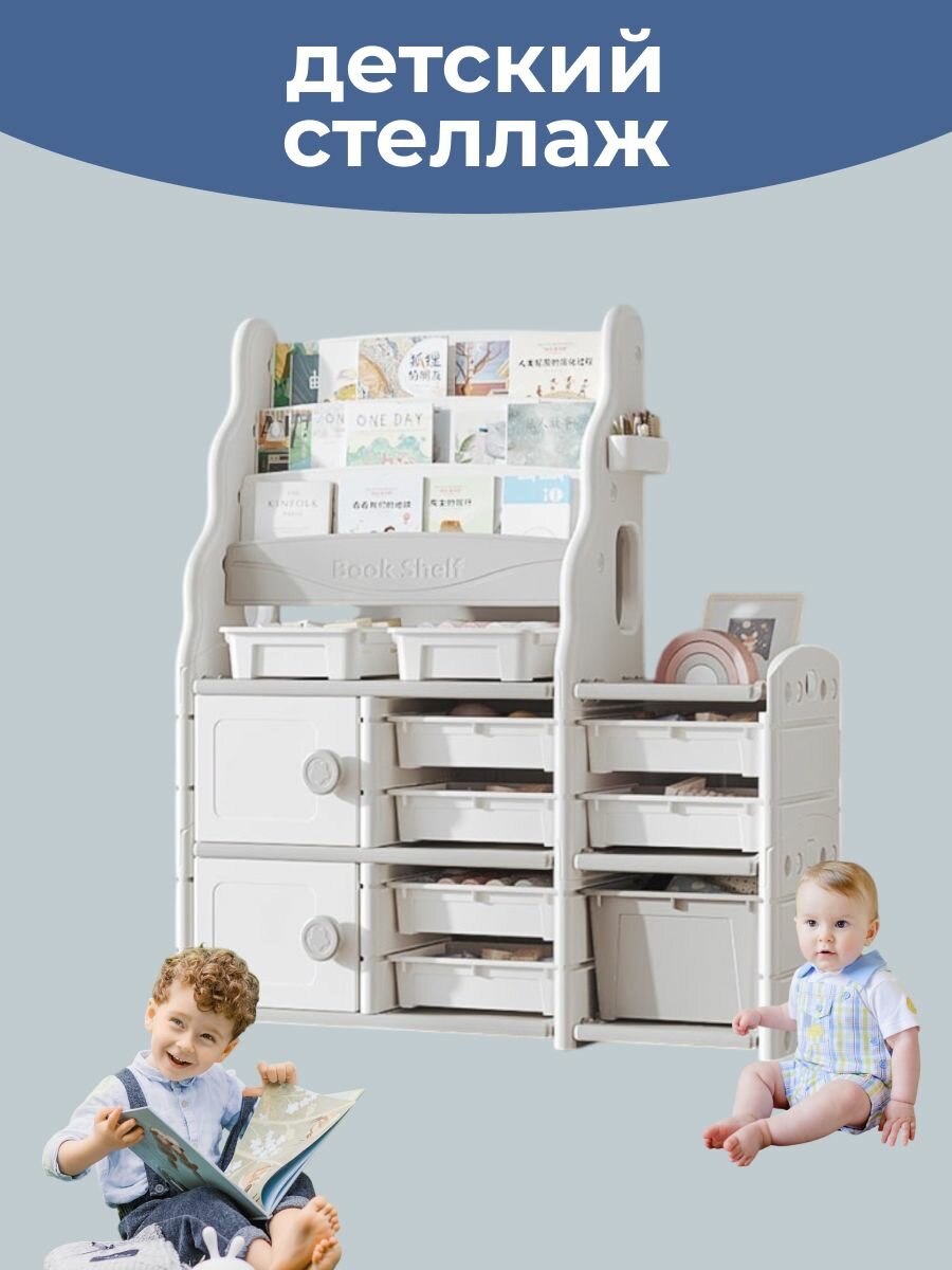 Детский стеллаж «Друзья» для игрушек и книг 104х35х120см, книжная полка напольная, белый; серый: сравнение цен, характеристики, фото, актуальное наличие и цены.