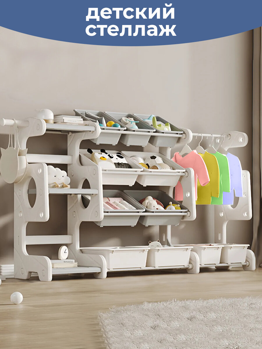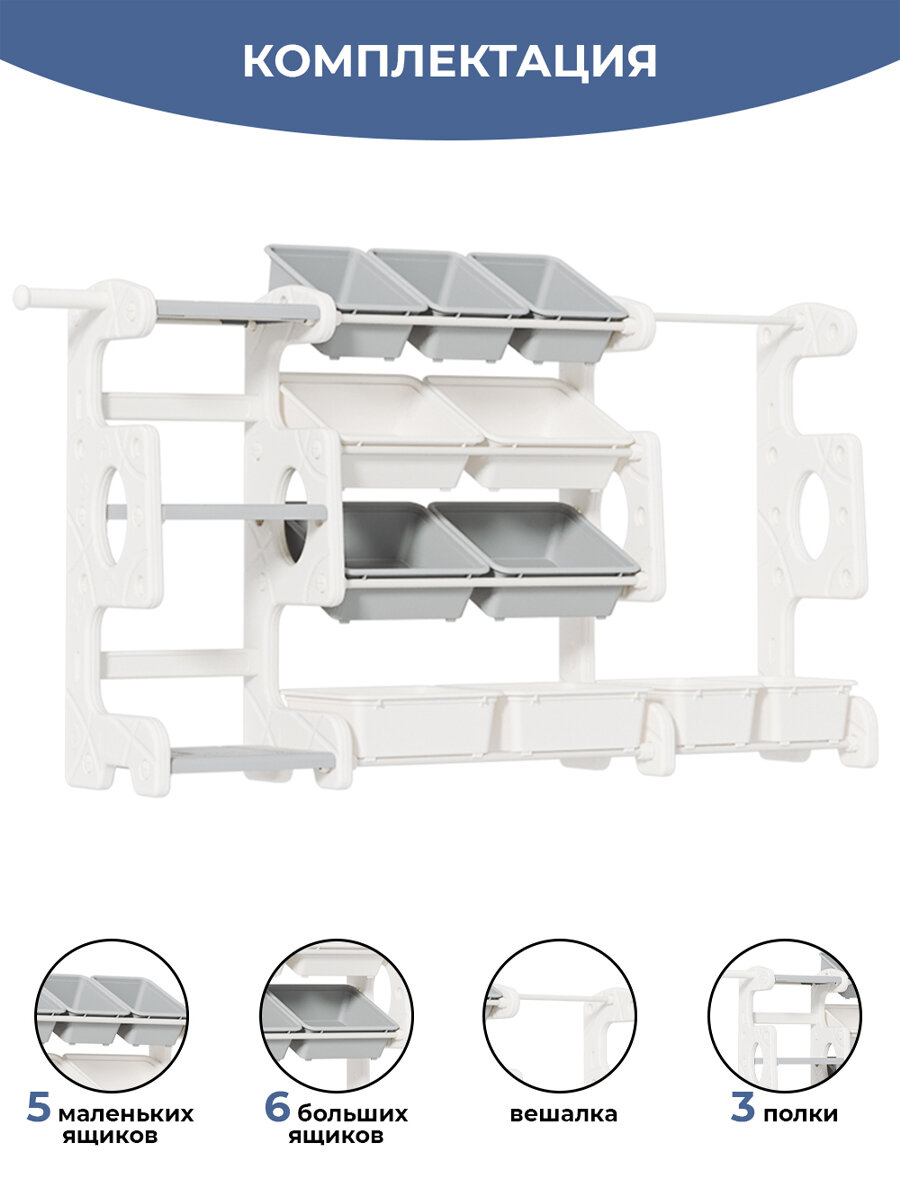 Купить Детский стеллаж «Мульти», 159х35х92 см, с ящиками, полками и вешалкой для одежды, белый; серый с доставкой по всей России.