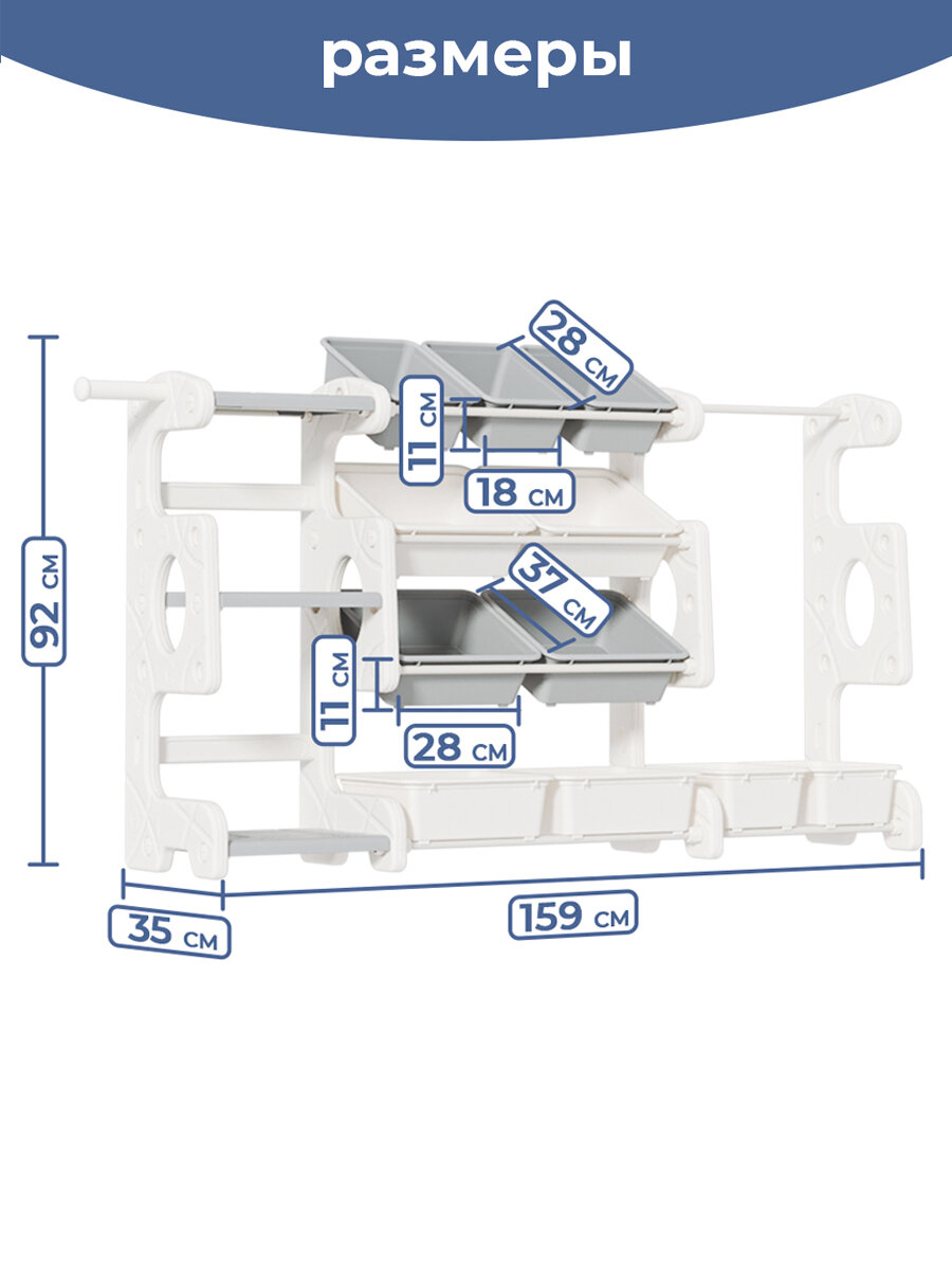 Детский стеллаж «Мульти», 159х35х92 см, с ящиками, полками и вешалкой для одежды, белый; серый: сравнение цен, характеристики, фото, актуальное наличие и цены.