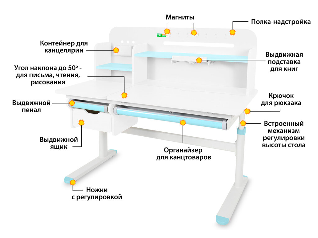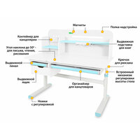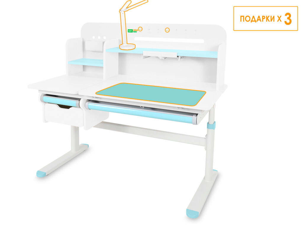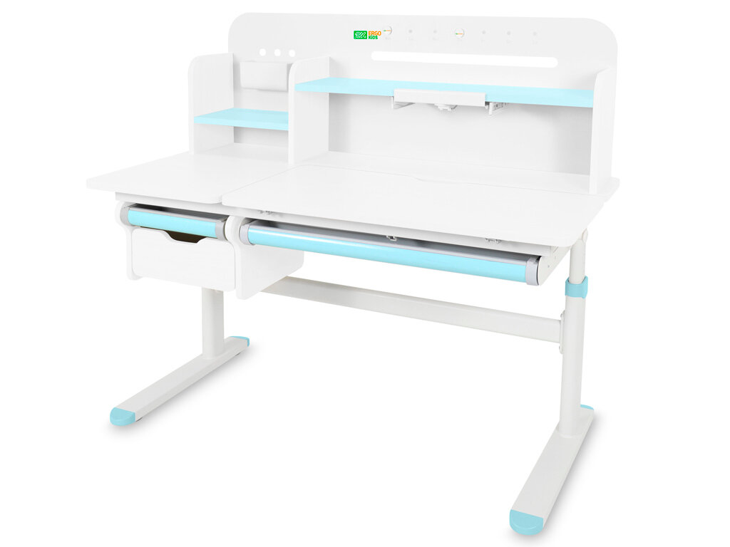 Купить Детский стол Ergokids Bravo Max Plus White/Blue (арт. TH-360 Max Plus WG/BL) — столешница белая / накладки на ножках голубые с доставкой по всей России.