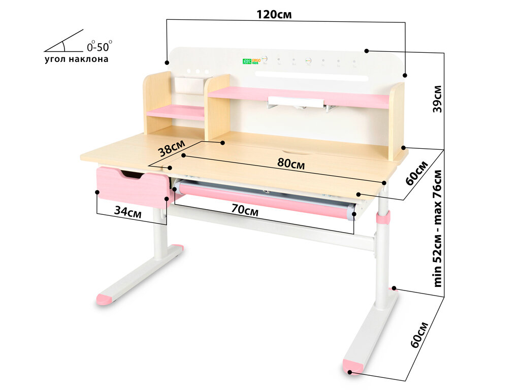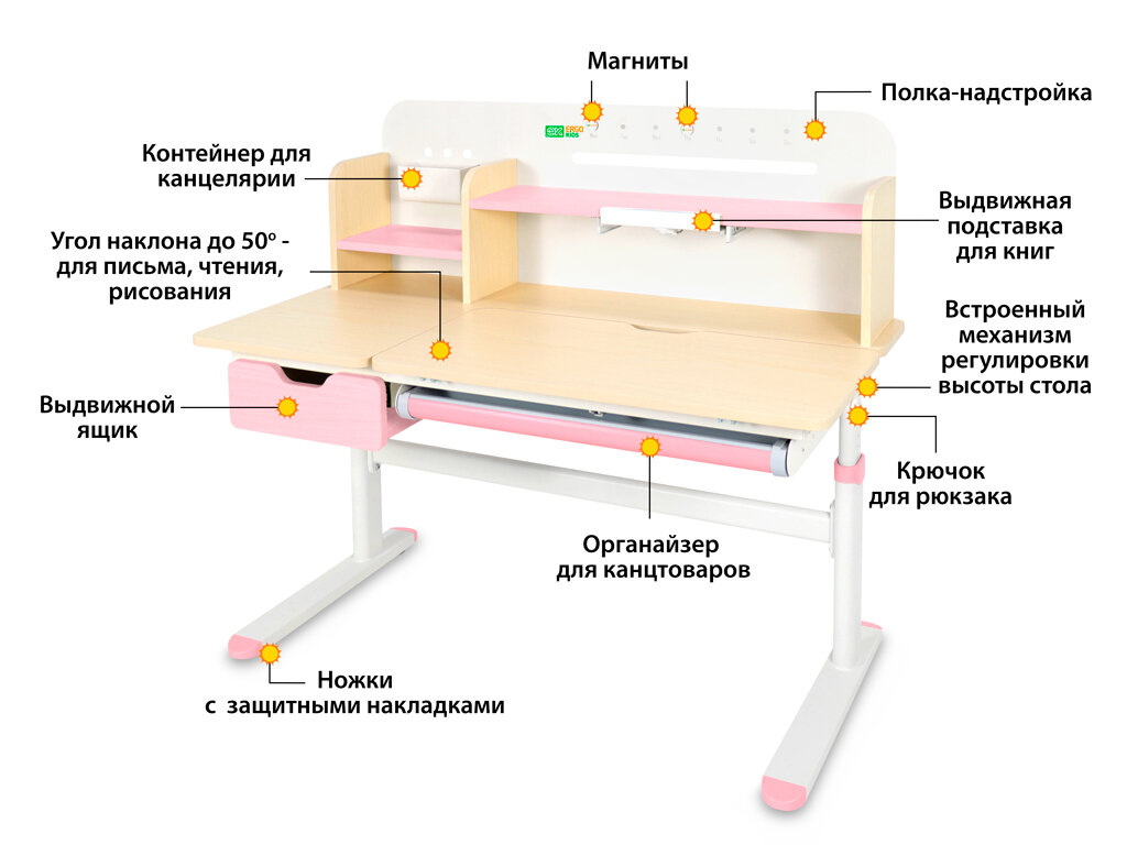 Купить Детский стол Ergokids Bravo Maximus Plus Maple/Pink (арт. TH-360 Maximus Plus MG/PN) — столешница клён / накладки на ножках розовые с доставкой по всей России.