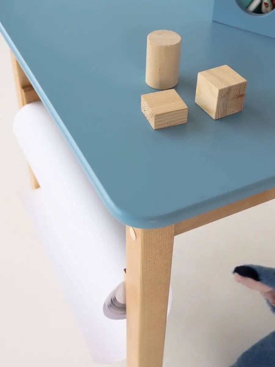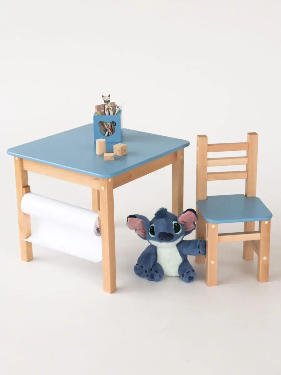 Детский стол и стул из натурального дерева - березы, отлично впишется в любой дизайн интерьера. Голубой детский столик подойдет для мальчиков! Можно использовать как детский игровой стол и стул для рисования. За столиком можно кушать, играть, рисовать, смотреть мультики или играть в планшет-телефон. Правильные размеры детского набора, поддерживают осанку малыша и помогают ему в здоровом развитии. Все размеры сделаны согласно госту для возраста 1-7 лет. Идеально подходит для детской спальни, является экологичным и не вредит здоровью малыша. В изделиях полностью отсутствуют острые углы что обеспечивает абсолютную безопасность для малыша, а на ножках использованы войлочные подкладки, что бы не царапать пол. Легкая сборка, справится любая мама! Можно отдельно докупить стульчик, и сделать набор стол и два стула. Пошаговая инструкция сборки в комплекте. Очень прочная конструкция, которая выдерживает не только маму и малыша, но и папу, стульчик выдерживает вес в 90 кг! Наша мебель для детей похожа на икеа, только гораздо лучше. Может быть как мебель для детского сада, в детскую комнату, а если нету отдельной детской, то отлично подходит для детского игрового уголка. Размер столика 60 на 60 см высота 52см, стульчика 30 на 30 см, высота по сидушке 30см, по спинке 58см. Общий вес: 13 кг.