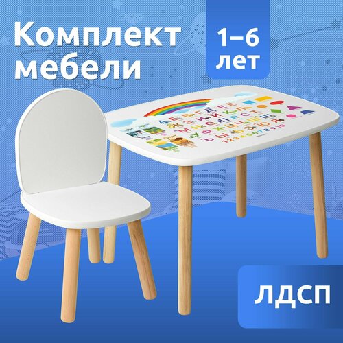 Белый комплект мебели от Мега Тойс с алфавитом - это стильный и функциональный детский комплект мебели из ЛДСП, включающий в себя уютный стульчик и просторный столик.