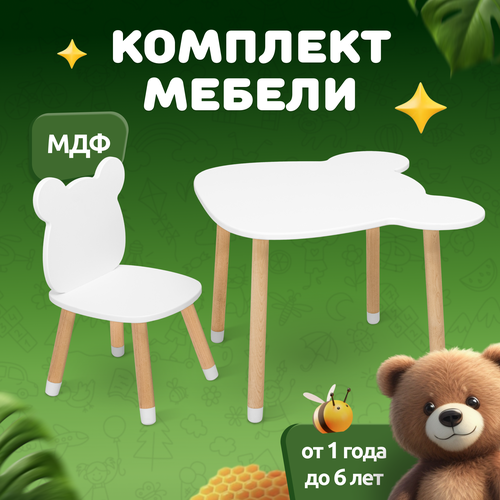 Купить Детский стол и стул из дерева MEGA TOYS Мишка комплект деревянный столик со стульчиком / набор мебели для детской комнаты с доставкой по всей России.