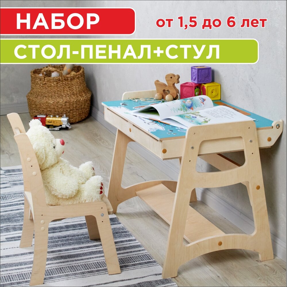 Представляем вам идеальное решение для детской комнаты - детский стол и стул, который станет незаменимым помощником в обучении и играх вашего малыша. Растущий дизайн позволяет использовать его на протяжении нескольких лет, а качественные материалы гарантируют долговечность и безопасность. Дизайн столика и стула идеально подходит для детской комнаты любого стиля. Изготовлен набор из гипоаллергенной березовой фанеры, на столешницу нанесена высококачественная УФ-печать. Остальные детали изделий отшлифованы. Стульчик обеспечивает правильное положение спины и комфорт при сидении. Он также растет вместе с вашим малышом - начиная с 1,5 лет, он будет служить верным спутником во время занятий и отдыха. Столик является настоящим рабочим пространством для маленького художника или ученого. Он оснащен пеналом с двумя контейнерами, в которых можно хранить карандаши, фломастеры, пазлы, раскраски и другие необходимые принадлежности. Можно использовать как детский рабочий стол для игр или стол для рисования. Благодаря регулируемой высоте стола, он легко адаптируется к росту вашего ребенка. Комплектация набора включает парту и стул, но при необходимости вы можете приобрести дополнительные стулья (детский стол и 2 стула набор), чтобы создать комфортную обстановку для игр с друзьями или проведения семейных мероприятий. Наш детский стол и стул из березовой фанеры - это идеальное сочетание функциональности, качества и безопасности. Они станут верным спутником вашего ребенка на протяжении многих лет, помогая ему развиваться и расти.