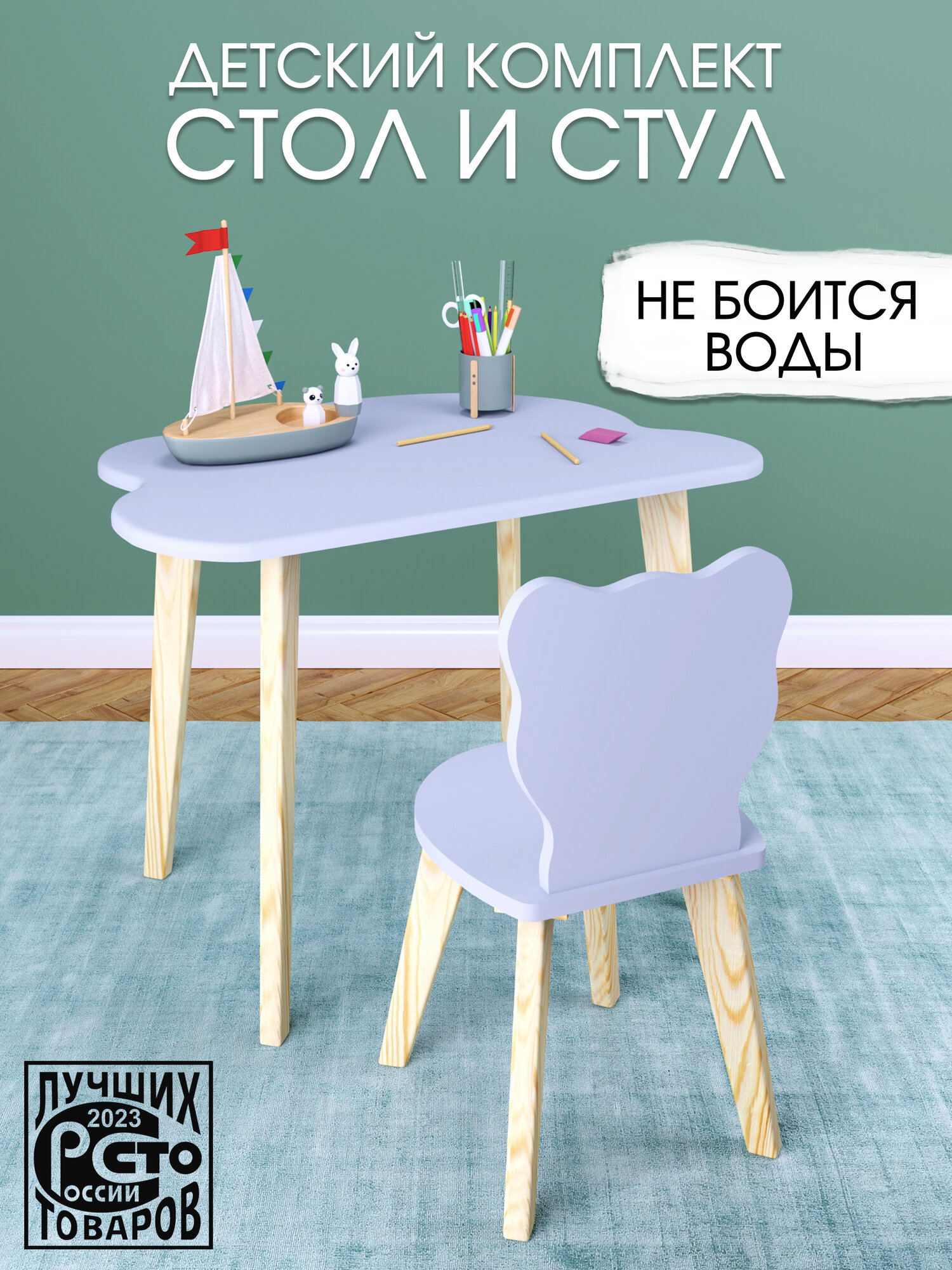 Главная особенность нашего детского стола — уникальное покрытие, устойчивое к влаге. Теперь ваш ребенок может рисовать красками, лепить поделки, перекусывать или заниматься творчеством, не беспокоясь о повреждении столешницы. Мебель изготовлена из высококачественных материалов, таких как ЛДСП (сиденье и спинка стула), МДФ (столешница) и массив дерева (ножки), что гарантирует прочность и долговечность. Ножки из тщательно обработанного массива дерева, гладкие, без покрытия лаком. По своему усмотрению вы можете покрыть ножки лаком. Отсутствие острых углов исключает риск травм.
