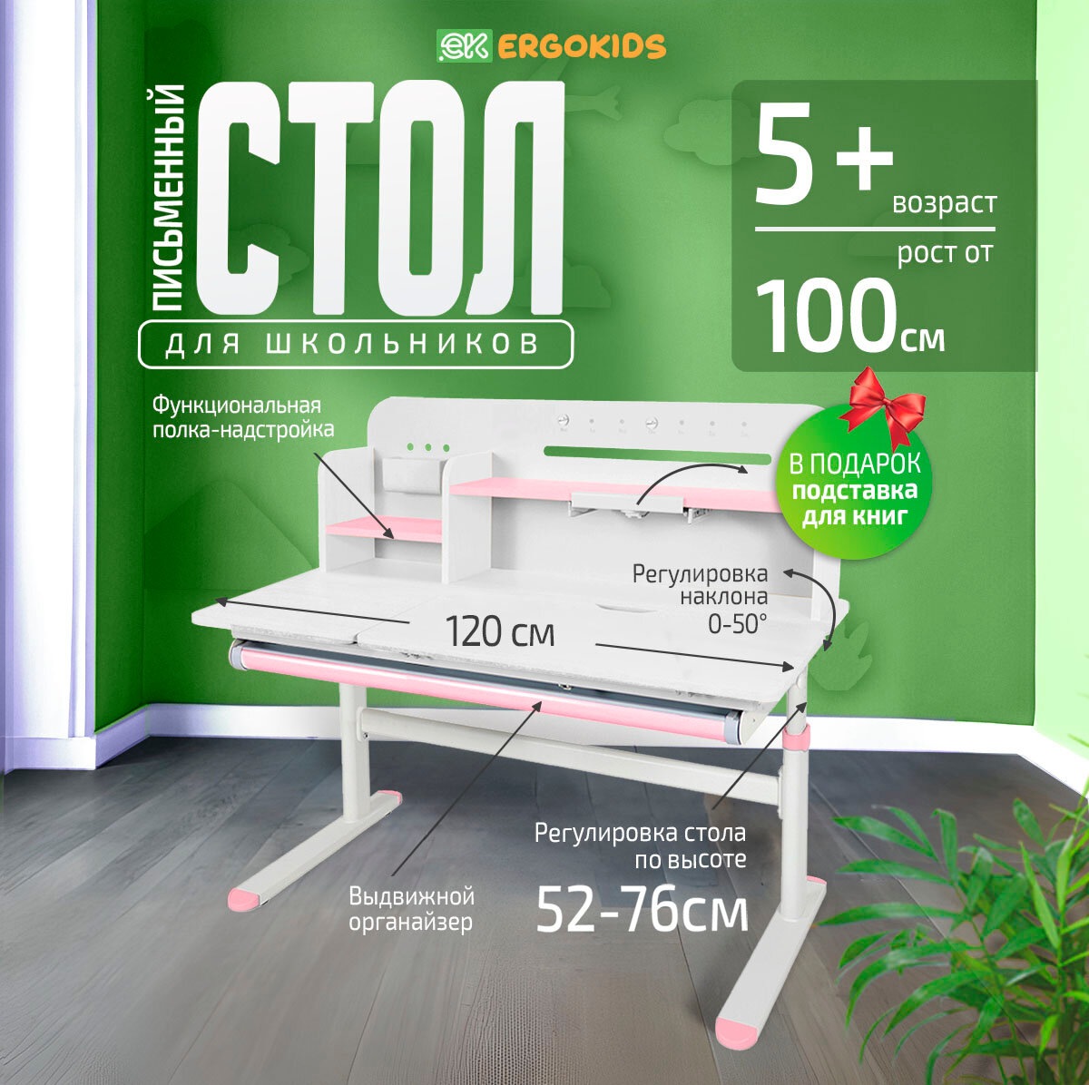Растущий стол для школьника Ergokigs Bravo рассчитан на детей от 5 лет и ростом от 110 см.