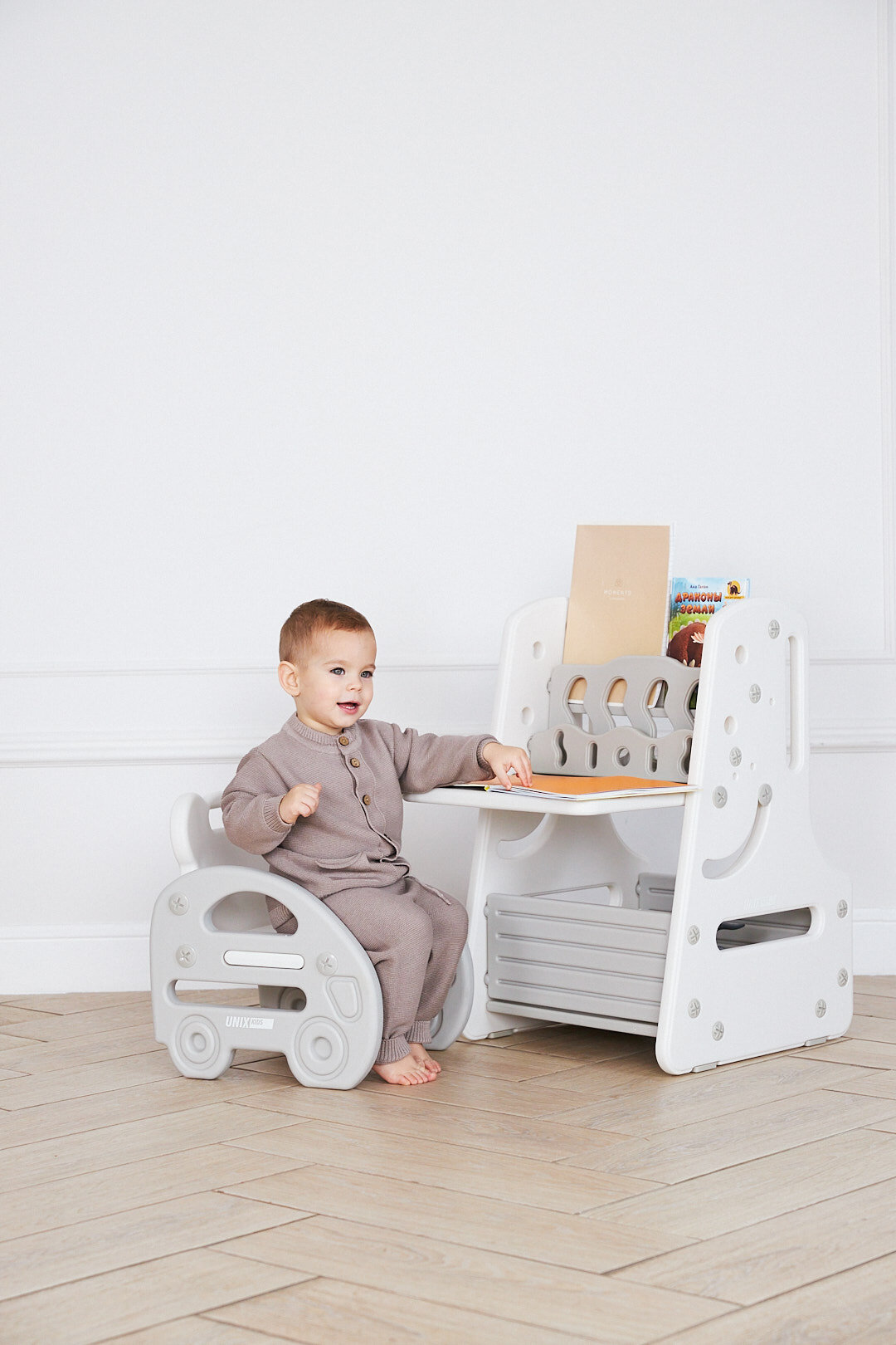Детский стол трансформер со стулом 3 в 1 UNIX Kids Grey - идеальный выбор для малышей! Этот уникальный игровой детский стол станет незаменимым для родителей, стремящихся воспитать самостоятельного ребенка и развить полезные привычки.
