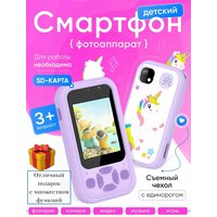 Купить Телефон детский с двумя камерами, игрушечный смартфон с фотоаппаратом, игры, встроенный MP3 плеер, сиреневый с доставкой по всей России.