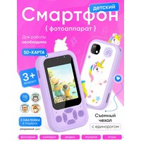 Купить Детский телефон, развивающий смартфон, фотоаппарат с двумя камерами, игры, MP3 плеер, сиреневый с доставкой по всей России.