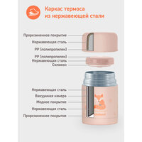 Термос детский для еды Miniland Thermy Dolce, с широким горлом, розовый с лисенком, 600 мл