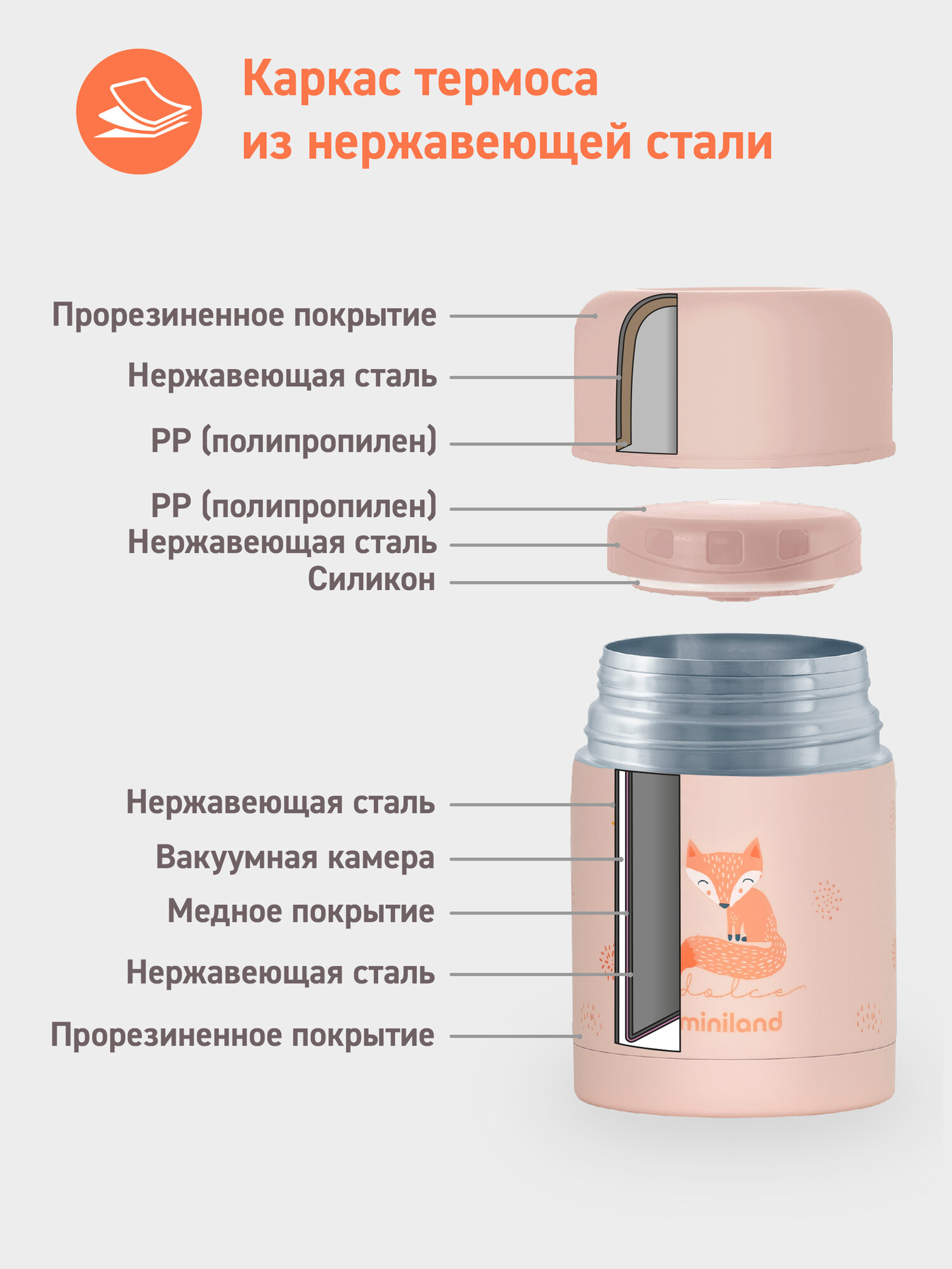 Термос детский для еды Miniland Thermy Dolce, с широким горлом, розовый с лисенком, 600 мл: сравнение цен, характеристики, фото, актуальное наличие и цены.